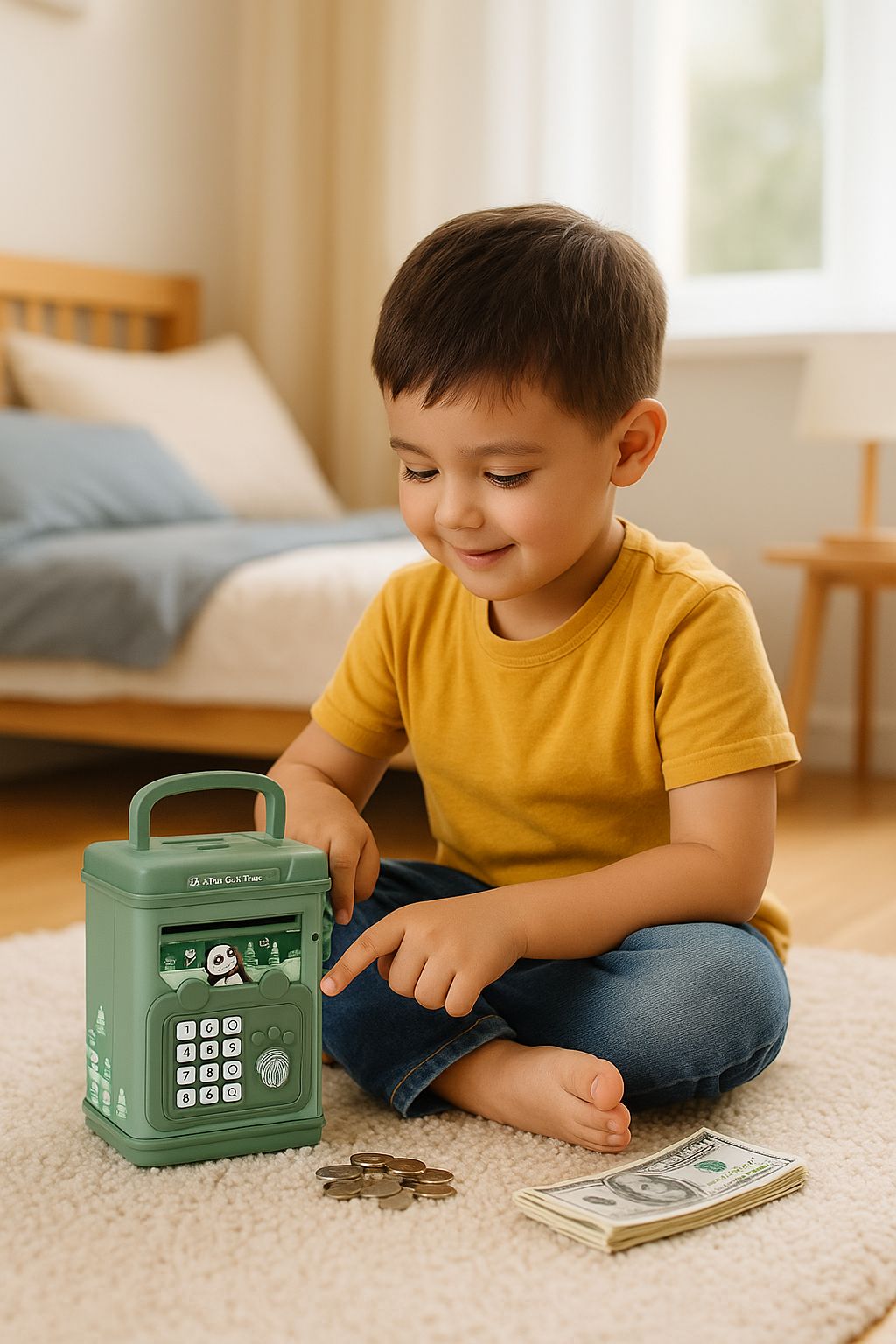 Panda ATM Safe Box is a fun and secure digital piggy bank designed especially for kids. With its adorable panda design and smart features like password protection and fingerprint sensor, saving money becomes an exciting adventure for little savers!